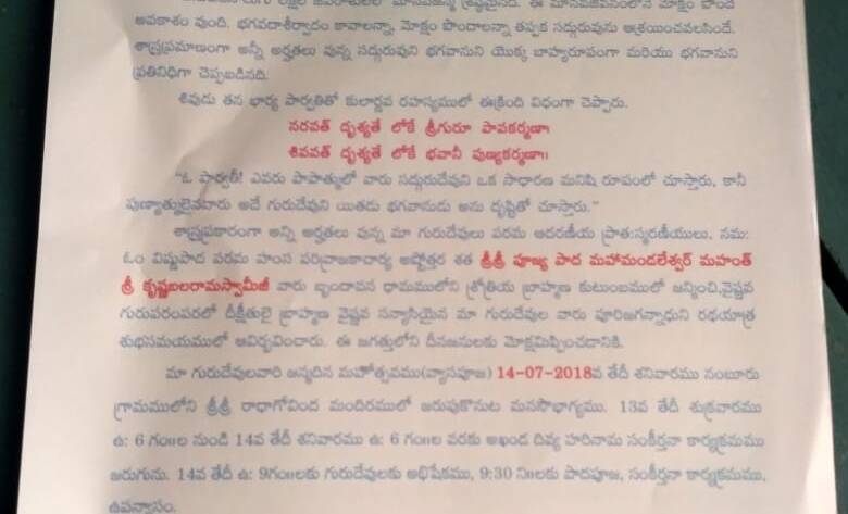 Presided by His Divine Grace Mahamandaleshwar Mahant Sri Krsna Balaram Swami. Held at the Sri Sri Radha Govinda Mandir (Red Stone Temple).