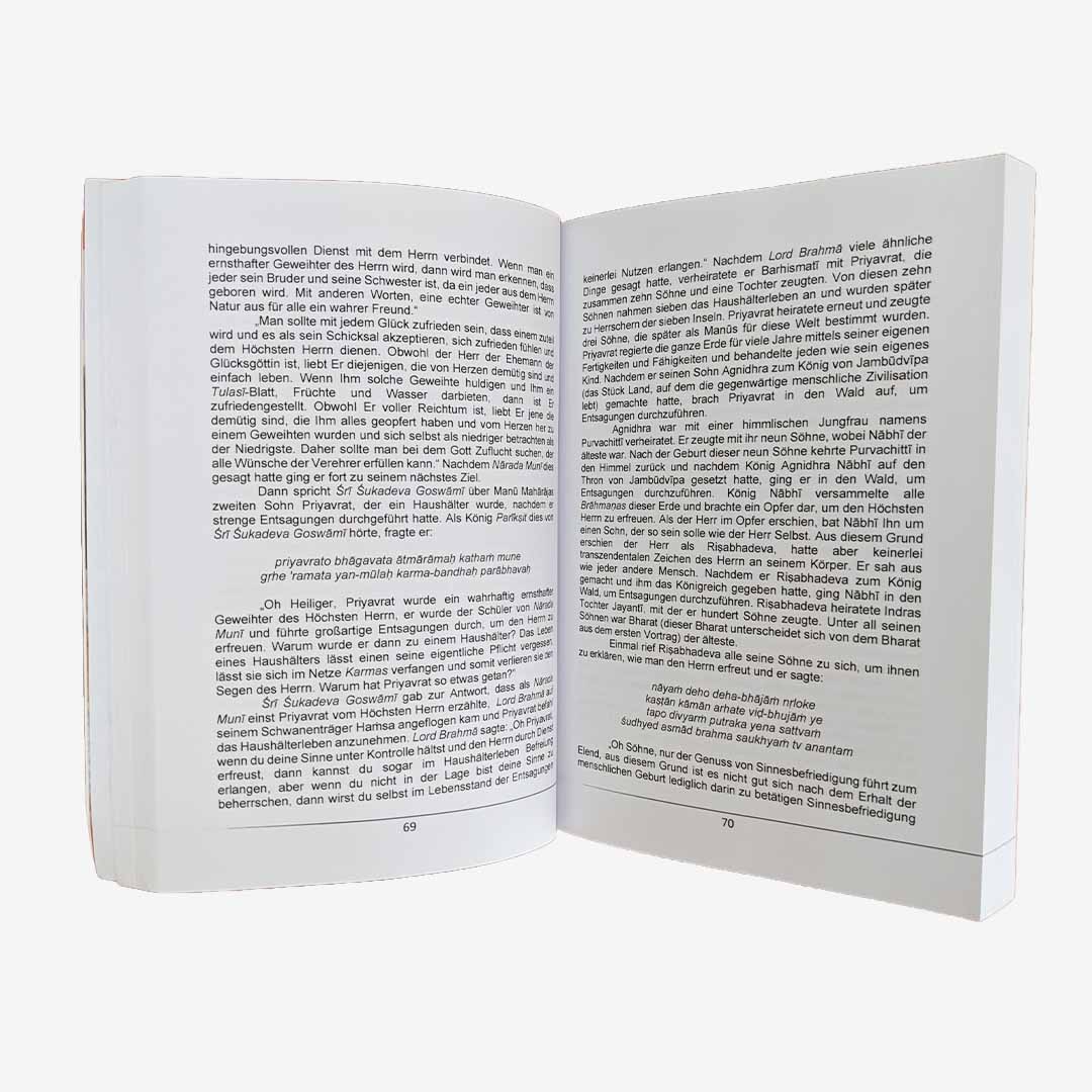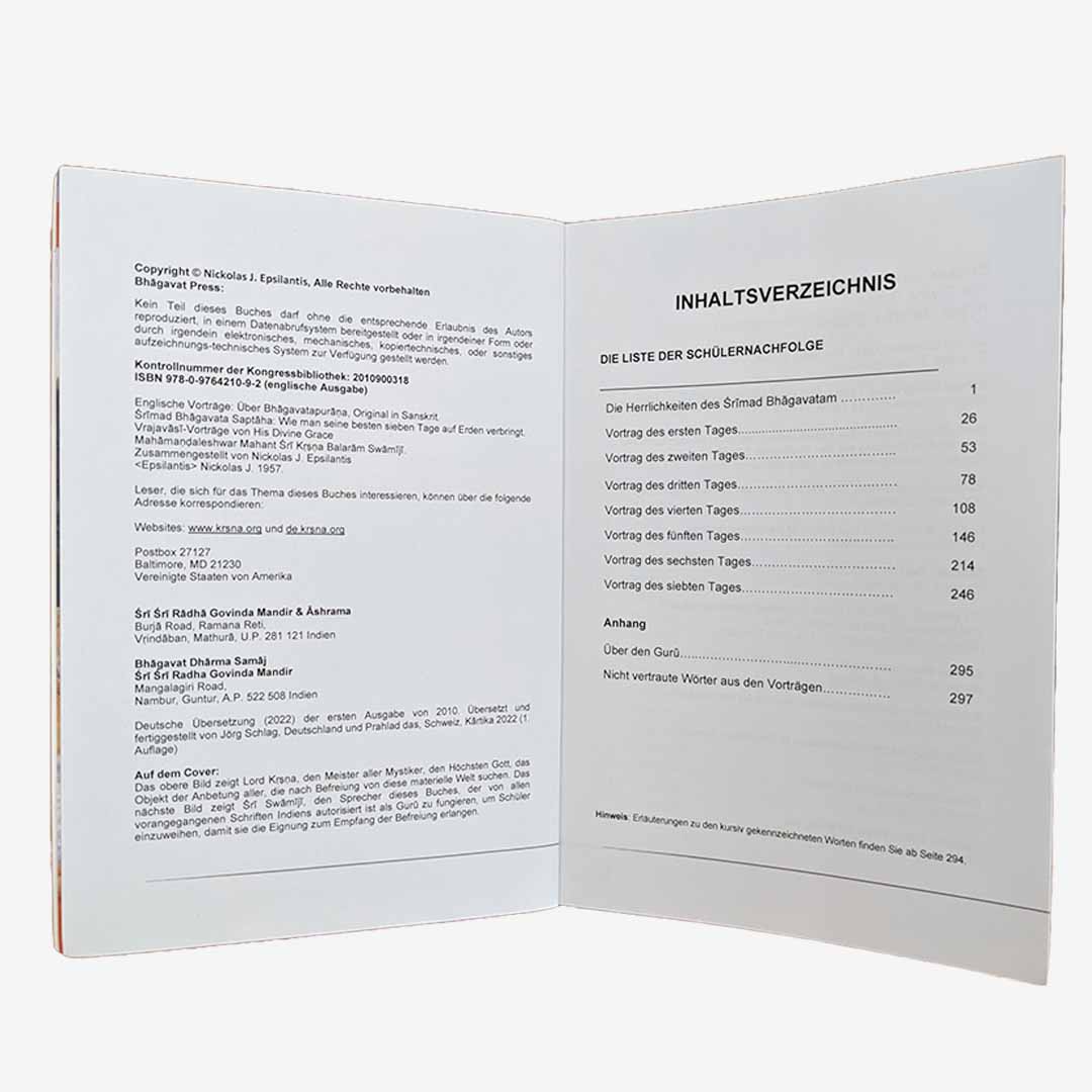 Der Vaiṣṇavismus, in westlichen Ländern besser bekannt als das Krishna-Bewusstsein, ist die Wissenschaft von Gott und das Hauptwerk dieser höchsten Philosophie ist das heilige Śrīmad Bhāgavatam. Dieses aus 18.000 Versen bestehende Werk handelt von den ewigen Aktivitäten des Herrn, erklärt Seine absolute Position und lässt den Leser die eigene Stellung innerhalb des Existierenden verstehen. Es existierte bereits weit vor der materiellen Schöpfung, in der wir uns derzeit befinden und ist die literarische Inkarnation Gottes. Śrī Vyāsadeva verfasste dieses Werk im Auftrag des Herrn, um den Menschen die Möglichkeit zu bieten, Befreiung von dieser Welt zu erlangen und das eigene Leben zum Erfolg zu führen. Śukadeva Goswāmī sprach es zu König Parīkṣit, der von einem Brāhmaṇa-Jungen dazu verflucht worden war in sieben Tagen zu sterben und der durch das Hören dieses Werkes Befreiung erlangte. Seine Heiligkeit Mahant Śrī Kṛṣṇa Balarām Swāmī Prabhupāda fasste dieses großartige Werk, welches aus 12 Cantos besteht, in sieben Vorträgen zusammen und stellt diese Vorträge nun in diesem Buch zur Verfügung. Das Buch ist erfüllt vom Nektar der Spiele des Herrn und hat das Potential das Leben des Lesers nachhaltig zu verändern. Nur eine von Gott bevollmächtigte reine Seele hat das Recht das Śrīmad Bhāgavatam zu interpretieren. Śrī Kṛṣṇa Balarām Swāmī Prabhupāda ist eine solche von Gott persönlich bevollmächtigte Seele, die im heutigen Zeitalter nur noch sehr schwer zu finden sind. Er ist der höchste Vertreter der Gauḍīya Vaiṣṇava Sampradāya und nicht nur selbst eine erleuchtete und selbstverwirklichte Seele, sondern auch in der Lage andere Menschen zur Befreiung zu führen. Daher sollte jeder, der Interesse daran hat Gott zu verstehen und sein Leben zum Erfolg führen will, dieses Buch lesen.